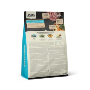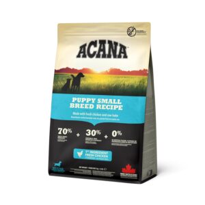 Pups of small breeds develop and grow into adults much faster than other pups. The Acana Puppy Small Breed Dog Food is packed with vitamins and protein from a variety of meats to cater to their growth needs. This recipe includes wild-caught flounder, whole eggs, fresh fruits & vegetables. Ingredients are sourced locally so they arrive at the Acana kitchens while still fresh.