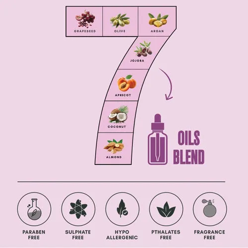 Cocos Nucifera (Coconut) Oil, Prunus Amygdalus Dulcis (Sweet Almond) Oil, Olea Europaea (Olive) Oil, Vitis Vinifera (Grape) Seed Oil, Prunus Armeniaca (Apricot) Kernel Oil, Simmondsia Chinensis (Jojoba) Seed Oil, Caprylic/Capric Triglyceride, Argania Spinosa Kernel Oil, Tocopherol