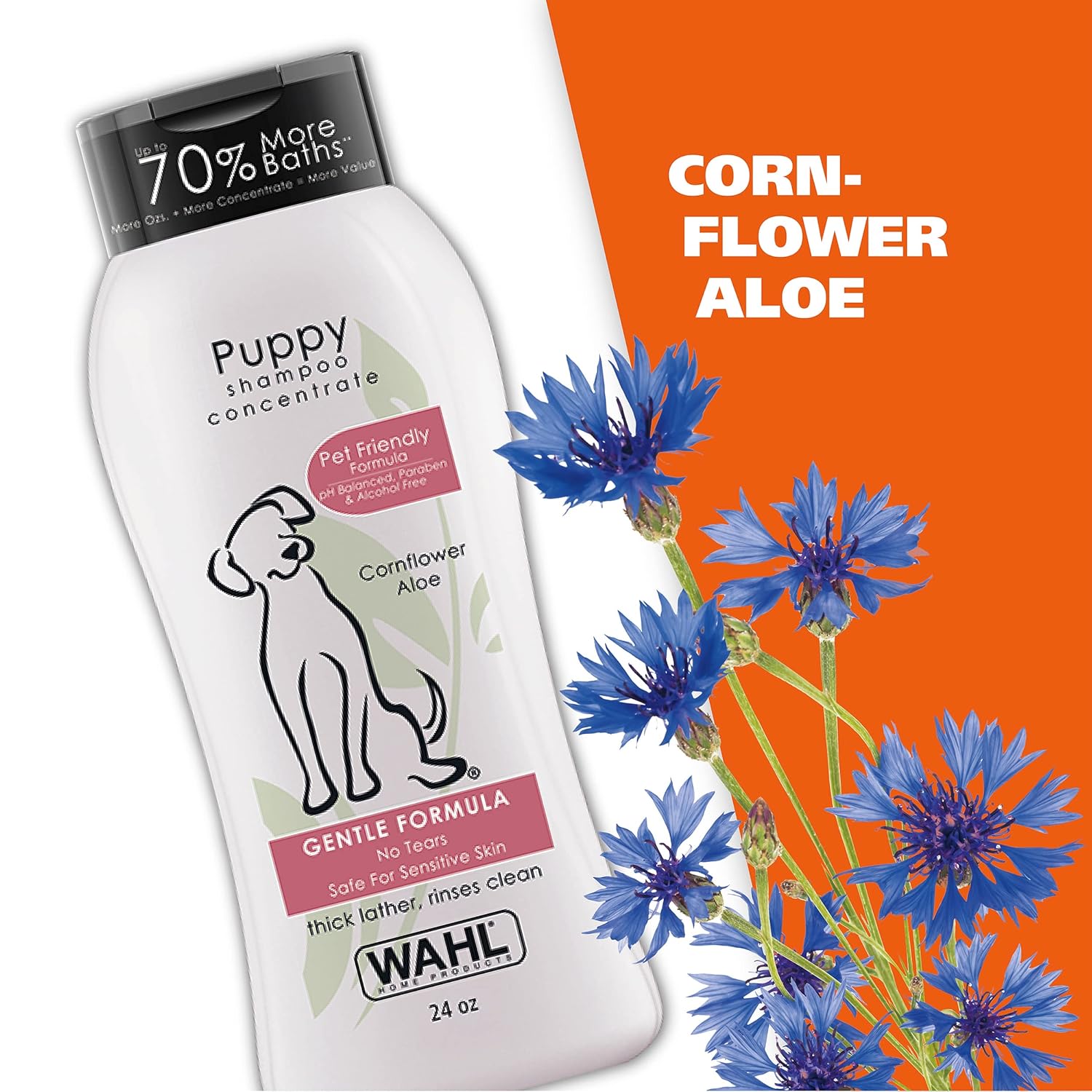 Wahl Puppy Shampoo is formulated with cornflower and aloe to gently cleanse and protect your puppy’s delicate skin.